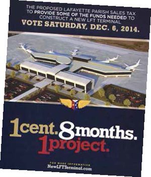 With the project estimated to cost about $90 million, most of the money needed to build a new terminal will come from state and federal sources (see left for specific split). Beyond the $12 million LFT has in its capital fund for the project, officials estimated they needed at least $30 million more. To bridge that difference, the Lafayette Airport Commission proposed a 1-cent sales tax, to be collected for a finite period of eight months, from April 1, 2015 through November 30, 2015.
