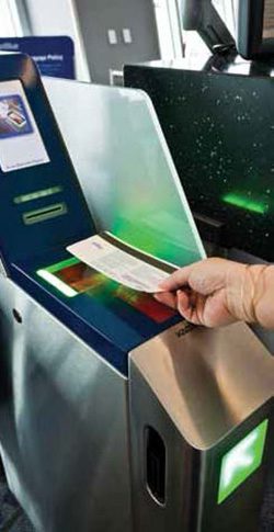The new self-boarding system allows gate agents to spend more time assisting passengers who really need their help, he notes. “There is a false impression that self-boarding gates are unattended. This is not true,” clarifies Ingalls. “In fact, we designed it so the gate agent is actually much closer to the self-boarding machine, perhaps 5 feet away instead of 20 feet away. If a passenger has a problem, he or she can simply move one step to the side and talk to the agent, and then get back in line, without having to go to the back of the line.”