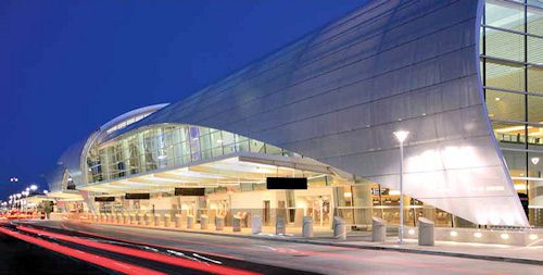 Terminal B’s environmental highlights include: glass curtainwalls and skylights with a Low-E coating, a reflective white roof, low-flow fixtures, use of recycled materials and certified wood, and more than 90% recycling of construction waste. Innovations and unique features include: water efficiency that’s 30% above code, 50% reduction in water consumption via drought-tolerant landscaping, energy-efficient air diffusers, a recycling program with 90% materials recovery, showers and secure bike storage for employees and an educational kiosk about sustainable design.