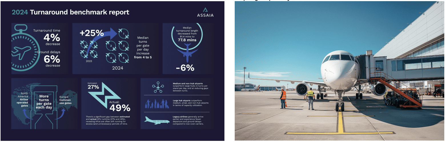 Long Beach. CA, November 07, 2024 — AI technology used by airports and airlines during the aircraft turnaround — the time between an aircraft landing and departing again — is proven to increase operational efficiency and reduce delays, according to the 2024 Turnaround Benchmark Report from Assaia. Contributing significantly to airline and airport profitability, these efficiency gains lower operational costs, improve customer satisfaction and maximize aircraft utilization and airport capacity.