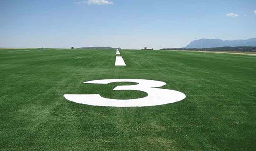 The Civilian Side The same year AvTurf installed a test patch of its synthetic turf at the United States Air Force Academy in Colorado Springs, CO, it also carpeted a 1,240-foot runway at Calhan Airport (5V4), a nearby privately-owned facility. "It's been nothing but a good experience," reports Airport Manager David Glaser of the 2006 installation. Since then, a variety of aircraft, including P-51s, Yaks and a DC-3, have tested the material. A few years ago, the Army rented the airport for three days of high-altitude assault training with a Cathay, recalls Glaser. "They had 22 people on board and did 12 to 16 landings a day," he explains. "The pilot locked up the brakes and slid. I had black marks out there that were 20 to 30 feet long, but the turf held up great. I just took my rotary broom out there and dressed it up." Glaser has also put the turf through other tests: "I've tried to tear it and burn it. I've put weed kill on it. It's held up great." He's similarly pleased with its care routine. Other than brushing some sand into the surface about three years ago, Glaser says the surface has been nearly maintenance free. From a user's perspective, a pilot who flies hunters into the airport provided Glaser with glowing feedback about the airport's synthetic turf: "He told me that it's better than grass, that it's the best thing he's ever landed on." |