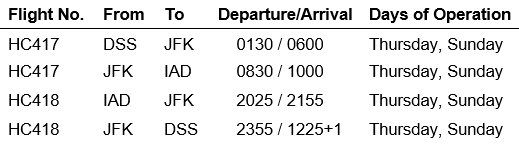 The Metropolitan Washington Airports Authority announced Friday that Air Senegal will launch one-stop direct service from Washington Dulles International Airport (IAD) to Dakar, Senegal’s Blaise Diagne International Airport (DSS) beginning September 2, 2021, with two flights weekly. Service to and from Dulles International will include a stopover at New York’s John F. Kennedy International Airport (JFK), where inbound passengers will clear U.S. Customs. Passengers on this new route will travel aboard Airbus A330-900neo aircraft operated in conjunction with Hi Fly.