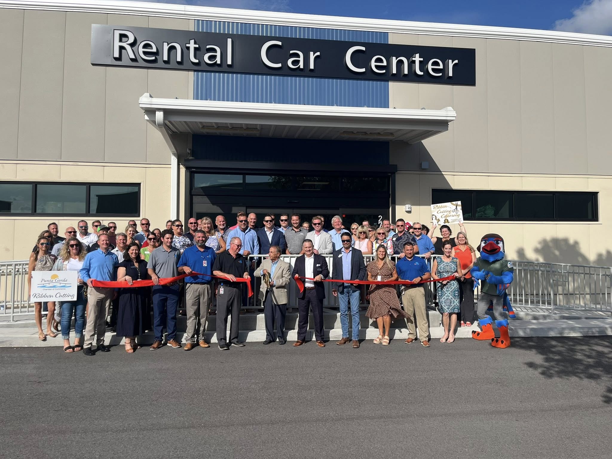 Punta Gorda, FL (Aug. 26, 2025) – Charlotte County Airport Authority (CCAA) Commissioners celebrated the opening of the new Rental Car Center in conjunction with both the Charlotte County Chamber of Commerce and the Punta Gorda Chamber of Commerce on Monday, August 25, 2025. CCAA Chair Rob Hancik led the ribbon cutting alongside commissioners Shan Swelland and Steven Leskovich.