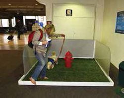 Lipp explains that Miami International Airport put a fake fire hydrant its large, park-like outdoor relief area years ago, and since then, many other airports have followed suit. “There is the misconception that dogs are attracted to fire hydrants. That is not true,” says Lipp, suggesting that airports could just as well use trees as decorative props. In light of the recent Department of Transportation requirement for U.S. airports to install post-security animal relief areas, more and more airports will likely be debating the issue. “Indoors, space is a huge matter,” Lipp advises, noting that fake fire hydrants can prove to be obstacles that dogs have trouble circling. |