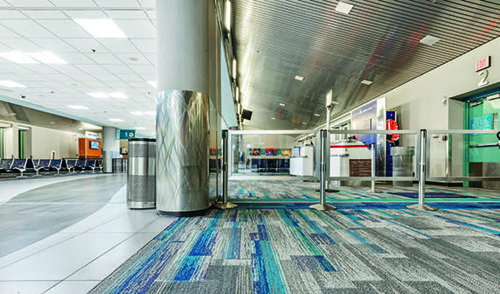 The airport turned to design consultants from Mott MacDonald to help select a durable, long-lasting alternative to replace the carpet along the center concourse. The carpet that was removed was from a project that ended in 2011. “Carpet typically has a usage of about seven to eight years, so it was time to replace it,” notes Flynn.