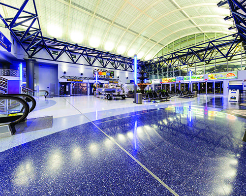 Location: Valley Int’l Airport— Harlingen, TX Project Duration: Sept. 2018 – Feb. 2019 Cost: $1.2 million Square Footage: 32,000 sq. ft. General Contractor: SpawGlass Architect: Megamorphosis, Inc. Installer: Mion Tile & Terrazzo Of Note: Contractor installed a moisture barrier over slab; new terrazzo is costing much less to maintain than airport’s 1980s ceramic tile |
