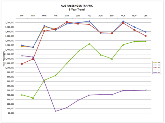 AUSTIN, TEXAS – Austin-Bergstrom International Airport (AUS) passenger traffic growth for April 2024 was up 1.65% compared to April 2023 with 1,875,980 passengers flying during the month.