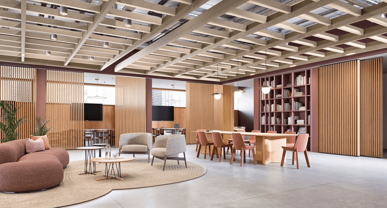 LANCASTER, Pa. (March 5, 2026) — Armstrong World Industries. Inc., a leader in the design and manufacture of innovative interior and exterior architectural applications including ceilings, specialty walls, and exterior metal solutions, has launched WoodWorks® Definitions Custom Grille Partition System. This custom partition solution offers architects and designers the opportunity to create one-of-a-kind, nature-inspired visuals while meeting the functional needs of a wide range of multi-use spaces. Integrating the warmth and biophilic benefits of wood visuals with precision definition of grille panels, WoodWorks Definitions Custom Grille Partitions are especially well-suited for high-end environments, ranging from corporate headquarters to boutique hotels and luxury retail locations.