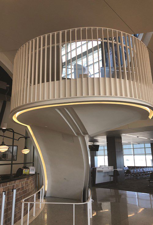 facts&figures Project: Terminal Expansion Location: Austin-Bergstrom Int’l Airport, TX Scope: 175,000 sq. ft. of new space, 9 new gates in the Barbara Jordan East Terminal Cost: $350 million for apron & terminal improvements ($311 million for construction) Funding: Airport bonds; FAA grants Timeline: Design approved in 2014; 90% finished by Nov. 2019 Noteworthy Features: Texas dance-hall design; outdoor deck space for passengers; pair of helix staircases; clerestory glazing; central tower Design Architect: Gensler Associate Architect: Carter Design Associates Programming: LeighFisher Associates General Contractor: Hensel Phelps Structural Engineer: AEC Environmental & Civil Engineering: Doucet & Chan Quality Assurance/Control: Encotech Engineering Consultants Security: AECOM Environmental Engineering: Baer Public Address System & Acoustics: Bai LLC Baggage Handling System: BNP Associates Mechanical/Electrical/Plumbing Engineer & Special Systems/Radio: Burns & McDonnell MEP/Fire Protection Engineer: Jose I Guerra Consulting Engineers Roofing/Waterproofing: Engineered Exteriors Lighting Designer: Fisher Marantz Stone Main Holdroom Seating: Eames Tandem Sling T Beam Seating, supplied by Workplace Resources Geotechnical Engineering: HVJ Associates Fire Life Safety/Code: Jensen Hughes Information Technology/Audio Visual: Moye Consulting Landscape Architect: MWM Design Group Civil/Airside Apron Engineers: RS&H Civil/Landside & Associate Architect: Sunland Group Passenger Boarding Bridge Subcontractor: Thyssen Krupp Public Relations: Beverly Silas & Associates |