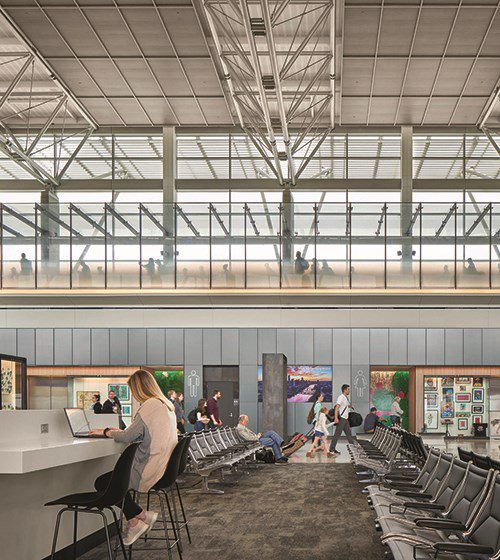 “This expansion allows our partner airlines to expand their services,” Estabrook says. Specifically, it increases the size of the terminal 29% and passenger capacity by 36%. “As a result, we anticipate more direct flights,” she notes.