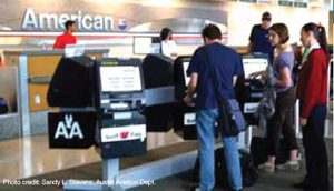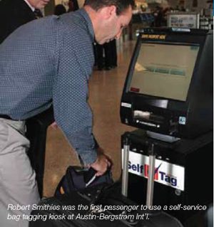 The efficiency of the process helps prevent backups at the ticket counter, notes AUS spokesman Jim Halbrook. “To keep lines moving is a good thing at any time, but when you’re at peak times and lines are coming out of ticket counter queues and spilling into the main lobby, you want people moving through the line as fast as possible. Self-tagging helps that happen,” Halbrook explains.