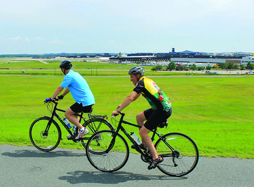 For more than 20 years, travelers, airport employees and the general public have enjoyed the 12.5-mile Hiker-Biker Trail that loops around the outside of Baltimore/Washington International Thurgood Marshall Airport (BWI). It even includes bike rentals for just $13 per day and passes through a park with a playground.