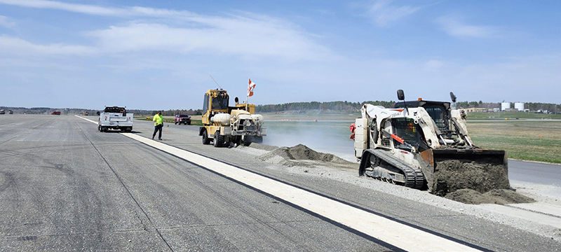 Repaving the middle section of the runway—about 2,500 feet during each construction season—was especially challenging. “During that work, the whole runway was closed for 55 hours at a time, so the work had to be done overnight,” Montgomery relates. “Generally, this closure period ran from 8 a.m. Monday until 3 p.m. Wednesday. Besides repaving, we had to do all electrical work, coring and soft cutting.