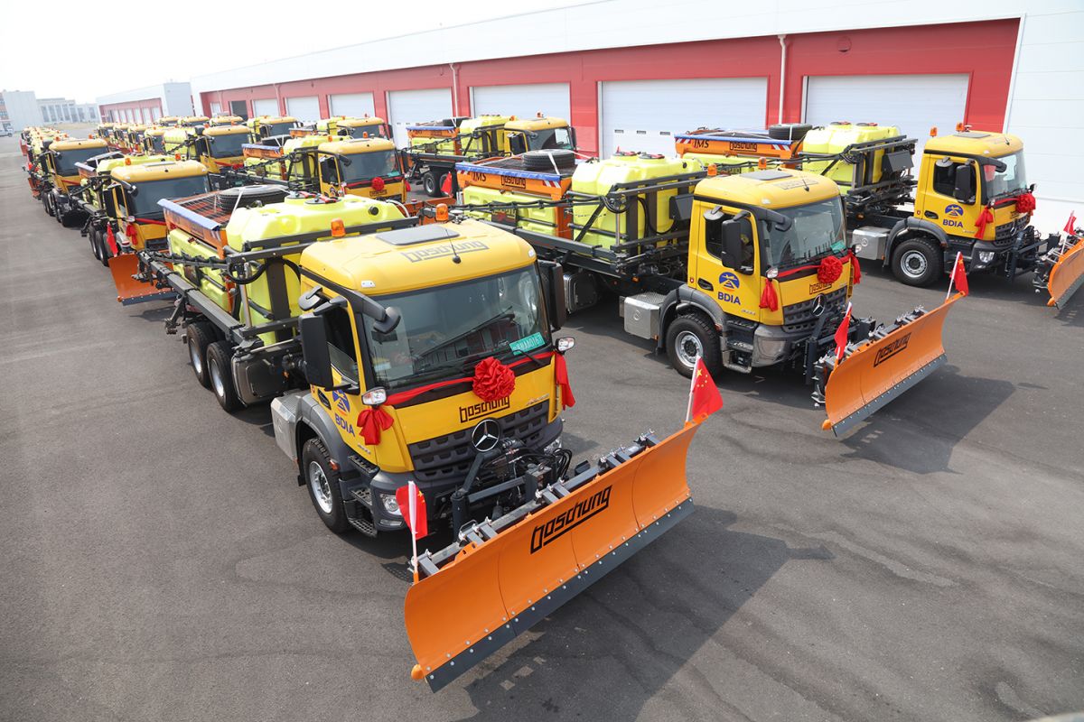 Payerne, Switzerland · September 26, 2019 – The Boschung Group in Payerne, Switzerland, a world leader in Surface Condition Management, today announces the delivery of 22 high performance airport de-icers to the new Beijing Daxing International Airport (BDIA). BDIA, Beijing’s new airport, will reinforce China’s Capital air traffic supporting the existing Beijing Capital International Airport (BCIA), a long-standing customer of Boschung. As both airports are managed by the same operating group, the positive experience with the existing Boschung maintenance fleet at the BCIA led to the decision to choose in favour of Boschung and its state-of-the art de-icing technology for BDIA though the Boschung bid was the highest in price.