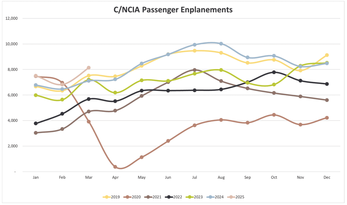 “Our March passenger enplanements haven’t been this high since 2017,” said Glenn Januska, Airport Director. “We are hoping that this strong trend continues throughout 2025.”