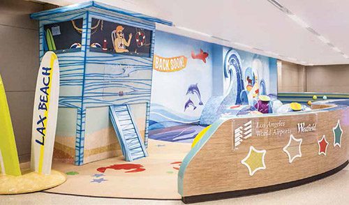 Los Angeles International Airport (LAX) had no play areas until last December, when "LAX Beach" debuted in the new Tom Bradley International Terminal, a few months after the terminal itself opened. Westfield Group, the terminal's concession developer and manager, assisted PLAYTIME and LAX in designing and installing the 971-square-foot beach-themed area for $350,000.