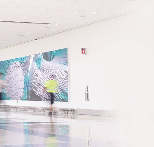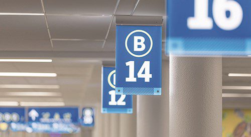 Another important reason to help passengers navigate is that research by Phoenix Marketing International shows happy travelers spend up to 40% more at airports than grumpy ones. Toward that end, Harding points out that a wayfinding plan should focus on more than just directional signage. Art, advertising and airport marketing needs to co-exist with informational signage. “We want to establish a visual harmony where these different elements work together to create a better customer experience,” he explains.