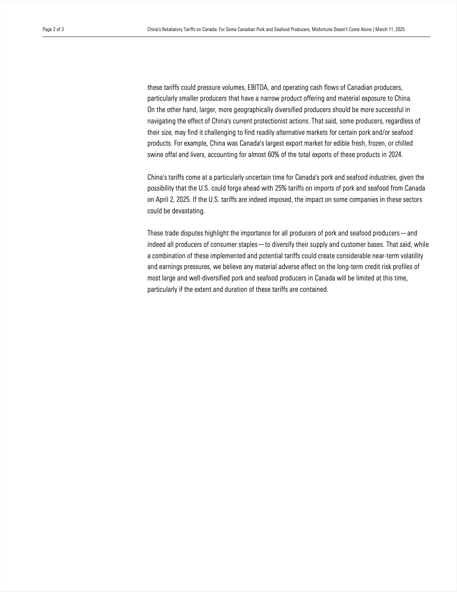 China’s Retaliatory Tariffs on Canada: For Some Canadian Pork and Seafood Producers, Misfortune Doesn’t Come Alone