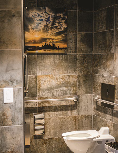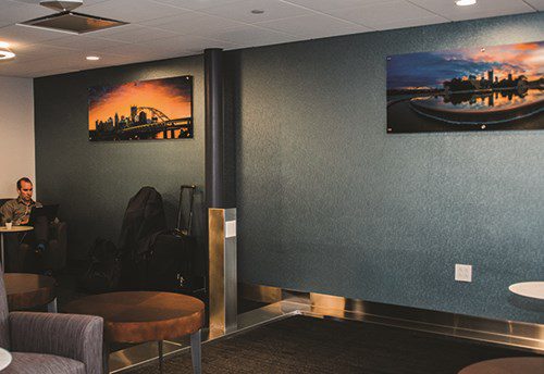 Local photography helps set the stage. At PIT, the lounge is decorated with works from Pittsburgh artist and photographer J.P. Diroll.