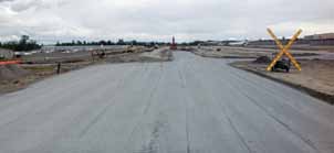 With construction on schedule to meet the July 18 runway opening, the project hit a snag. When IMCO crews ground pavement off to lower the east perimeter road, they found fiber optic cable just beneath the surface. Although the existence of the cable was not a surprise, its shallow depth was. Project designer Reid Middleton knew that a large bank of fiber optic cables servicing the Boeing facilities lay under the road and had asked the local utility company to specify the depth of the conduit. The utility dug three 13-foot exploratory holes, found nothing and gave crews the go-ahead.