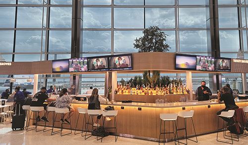 Customers can use smartphones or kiosks to place orders for food and beverages from Trinity Groves, and choose to pick them up from a locker or have items delivered to them at a specific seat in the gate area. Traditional counter service is also available. Remote ordering and pick-up lockers are especially popular with COVID-cautious passengers who want to eliminate their interaction with concessions workers.