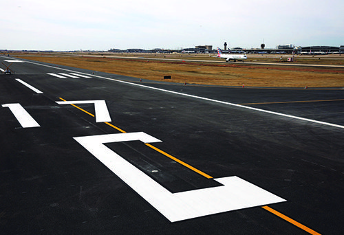 Choosing an asphalt overlay instead of a full-depth concrete replacement for the entire runway resulted in less demolition, tighter construction schedule and shorter closure time, explains McCollom. It also cost less—$135 million versus $150 million for full concrete replacement. Moreover, an asphalt surface simplifies runway maintenance throughout its 30-year lifecycle because future repairs can be performed at night and the runway does not have to be shut down for extended periods.