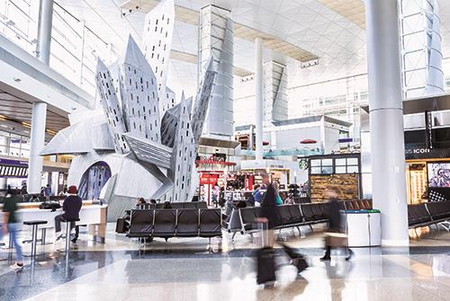 The massive art installation also serves as a wayfinding element, because it is visible from the entire village on the north side of Terminal D.