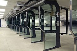 Frangible bullets used in the $2 million, 8,215-square-foot firearm training facility is one notable “green” element. The bullets, officially known as Reduced-Hazard Training Ammunition (RHTA), turn to copper dust upon impact with the ballistic steel paneling on the back of the range. Because the bullets don’t contain toxic materials like traditional lead-based ammunition, the facility can be maintained by airport authority crews rather than by special hazardous material teams.