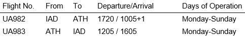 Athens becomes the newest among more than 150 nonstop destinations served from Dulles International and the 52nd international city with a nonstop connection to the National Capital Region’s leading international airport. Schedule details of the new flight, which will operate aboard a Boeing 787 Dreamliner, are as follows: