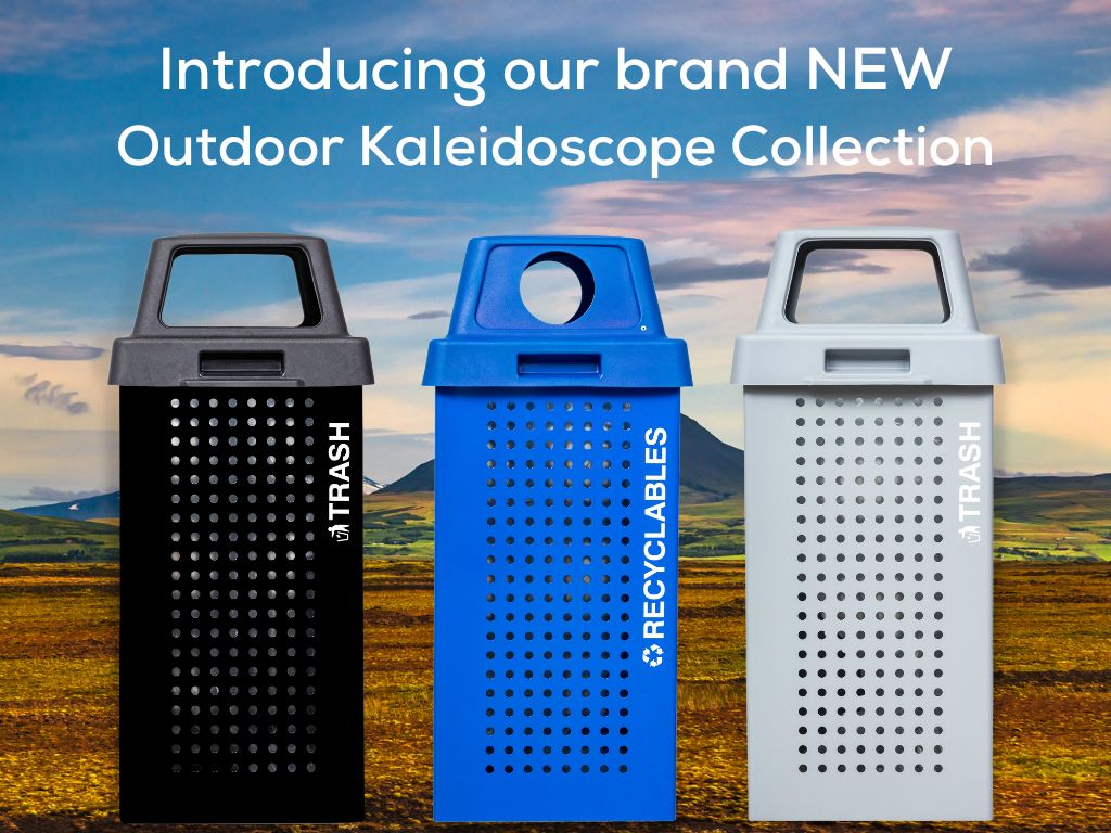 We are so excited to announce the launch of our brand-NEW Outdoor Kaleidoscope, available beginning April 1, 2023! Designed for the outdoors with the same level of simplicity and style that has made our Classic Kaleidoscope Collection a best-seller since 2009. Perfect for spaces like parks, universities, and outdoor building entrances, these receptacles are sure to be a hit in any outdoor setting.