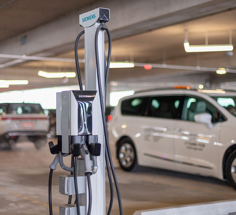 The new garage includes 48 charging stations for electric vehicles, with capacity for more if needed.