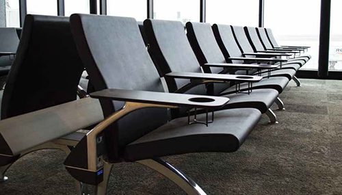 The airport also decided to end passengers' search for a place to charge their phones or plug in laptops. Each and every Arconas holdroom seat is equipped with a dual USB port, electrical outlet and cup holder. "This is the first airport in North America and possibly the world that has 100 percent powered seating throughout the entire airport," says Lynn Gordon, vice president of airport solutions for Arconas. "Every passenger has the best seat in the house."