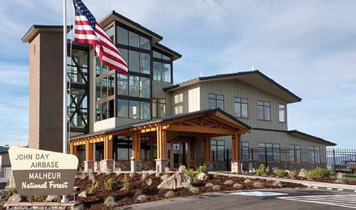 Grant County Regional Airport (JDA) in John Day, OR, is setting new standards for joint-use facilities. With space for general aviation functions, public events and the United States Forest Service, its new $5.3 million terminal includes out-of-the-ordinary architectural features including helipad facilities for the Forest Service. Additionally, the entire operation was designed and built to meet environmental certification standards.