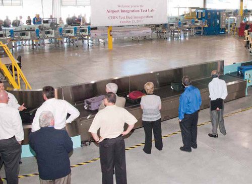 Thompson reached out to the International Association of Baggage System Companies (IABSC) and its member companies to find participants for the test facility’s first baggage screening configuration. Response to the request was overwhelming, he recalls, with about 50 companies attending a preliminary meeting that provided an overview of the concept.