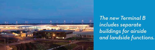 “There was a very strong emphasis put on maintaining customer service and keeping it easy for passengers to use this airport while we were constructing right in the middle of the airport,” recalls Kelley. Specific efforts were made to ensure that roadways were open, parking close to the terminal remained available and routes for construction vehicles mixed as little as possible with public traffic.