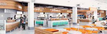 The Marche, an area where travelers can purchase food from different vendors but pay in one transaction, provides what Bohn calls a “market hall experience.” It is not designed as a series of individual shops, but rather a large space with various vendors, he explains. Offerings will include freshly prepared sushi, a yogurt bar, soup station and various grab-and-go options. “The intent is to make that an experience by itself,” Bohn adds.