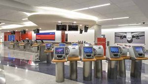 Without adding square footage to the terminal, architects managed to double the size of the ticketing lobby. Personnel from architect of record Corgan explain that the terminal’s new design reconfigured the available square footage in a way that accommodates a more efficient ticketing process. Instead of a traditional linear check-in process, Terminal 5 now features a pod concept, which allows for different levels of service and processes customers much more quickly, details Corgan principal Jeff Mangels. The newly configured lobby features 40 ticket counter locations and 39 self-service kiosks.
