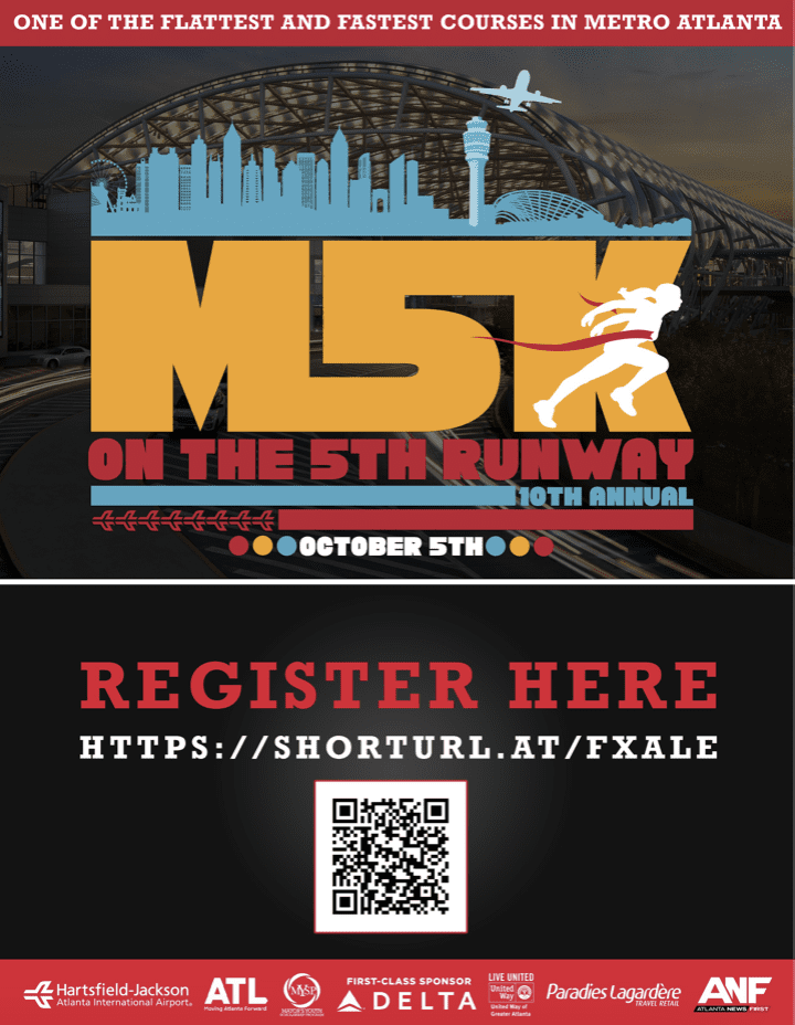 ATLANTA – Atlanta Mayor Andre Dickens will join Hartsfield-Jackson Atlanta International Airport (ATL) Interim General Manager Jan Lennon to host the 10th annual Mayor’s 5K on the 5th Runway, welcoming up to 2,000 runners early on Saturday, Oct. 5. This race offers participants the rare opportunity to run or walk on ATL’s 5th runway — one of the flattest and fastest courses in Greater Atlanta. The Mayor’s 5K on the 5th Runway also serves as a USATF-certified 5K course/AJC Peachtree Road Race qualifier. Proceeds from the race will benefit the Mayor’s Youth Scholarship Program, helping students overcome financial worry and lingering debt concerns, which in turn builds a strong foundation for future career success and wealth building.