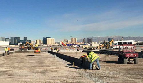 In April, McCarran International Airport (LAS) in Las Vegas reopened its 14,500-foot primary runway, following a six-month closure. Runway 7L-25R, which handles about one-third of the airport’s traffic, had been temporarily closed from October to April during each of the past two years to replace nearly 366,000 square yards of deteriorated asphalt concrete pavement. Now, aircraft operate on 19-inch-thick, full-strength Portland cement concrete pavement.