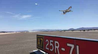 The reopening of 7L-25R in April completed LAS’ transition from asphalt to Portland cement concrete on all four of its runways. The FAA is pushing major airports to change to all concrete runways, informs Todd Cooklin, project manager for Clark County Department of Aviation. “Cleaning rubber residue off concrete is easier than cleaning it off asphalt,” he explains. “And there can be some issues with asphalt pushing and moving when you get into the August heat.”