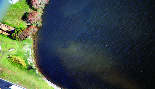 Crews filled a deep hole in the estuary along the runway’s north shoreline to create a shallow one-acre area for the new seagrass island. Aquatic restoration specialists from Sea and Shoreline harvested the seagrasses from the fill area and grew them at the company’s facility in Ruskin until the seedlings were large enough to be transplanted.