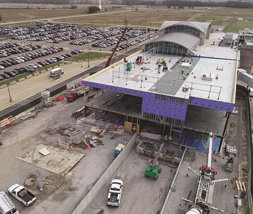 Overall, the expansion doubles the terminal’s square footage with two new floors and a partial basement. The basement was added to provide shelter during tornados and other hazardous Midwest weather events. “We’ve got the ability to place 900 people in the basement very comfortably, if needed,” Johnson notes.