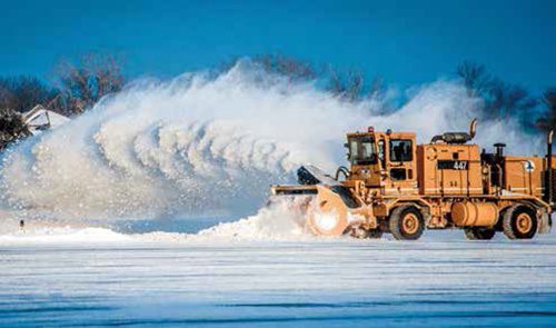 Thanks to hydraulic technology, snow removal machines now operate faster and move more snow in critical situations when time is tight, says Dan Gage, co-owner of MacQueen Equipment Group, which supplies the Metropolitan Airports Commission with snow removal equipment. Gage highlights the ribbons on snow blowers as an example: “Today, snow blowers offer six different speeds … if the truck goes 35 miles per hour, the ribbon can turn at 35 miles per hour.