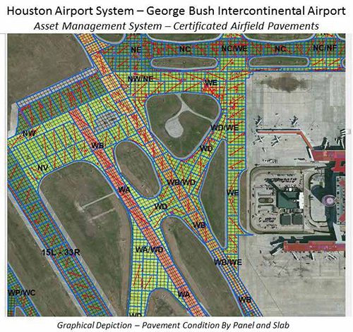 factsfigures Project: Digital Data Collection & Airfield Pavement Mapping Airport: George Bush Intercontinental Airport Authority: Houston Airport System Primary Technology: Light Detection & Ranging; Mobile Mapping System Contractors: Ricondo & Associates; Woolpert; APTech Integrated Systems: Infor(tm) Enterprise Asset Management Systems; Geographic Information System; PAVER(tm) Cost: 1.9 cents/sq. ft. of certificated pavement |