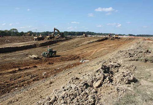 Excavation began on Sept. 16, 2013 – the very day that the Monroe County Board of Aviation Commissioners gave notice to proceed, notes Payton. With the runway closed, workers began by removing nearly 300,000 cubic yards of earth from the suspect area. Next, crews repaired the hole using a geogrid material topped with layers of various gradations of large and small stones, a geotechnical fabric and soil.
