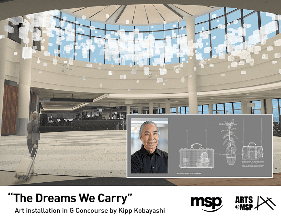 Kobayashi is a Los Angeles-based artist, teacher and art advocate with many public and private art commissions that demonstrate his unique talents working with multimedia in collaboration with architects and engineers. Over the past year, Kobayashi has interacted with dozens of groups and hundreds of Twin Cities residents and MSP travelers who informed his design and revealed some of the treasures that bring us together and define a community.