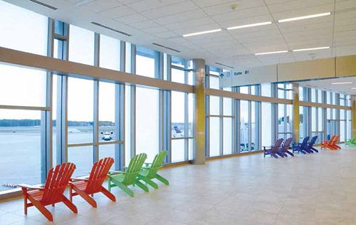 With brightly colored beach chairs and sand-tone flooring, it's hard to miss the local bent of the recent expansion and renovation at South Carolina's Myrtle Beach International Airport (MYR).