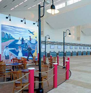 La Pier describes the terminal itself as comfortable, well lit and easy-to-use, with ample signs. "It's a fun building to navigate because there are lots of vistas," he relates, noting that passengers riding the escalators down to baggage claim are treated with views of a nearby golf course.