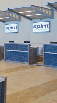 MYR has 18 CUSS kiosks located in front of ticketing counters and in common areas. All are standalone, but most are grouped in pairs.