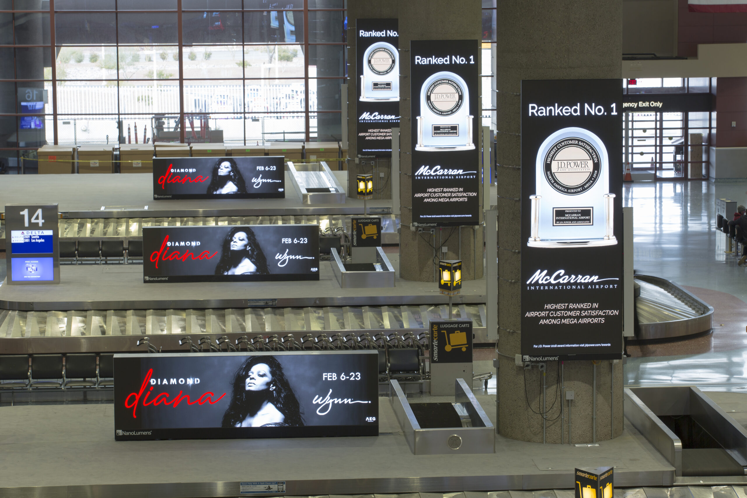 “Most of the adverting that Lamar had in that baggage claim area needed to be constantly updated as the shows and events in Vegas frequently change. Removing static banners and sign graphics and putting up new ones was an additional cost for Lamar’s advertisers,” said Dave Merlino, NanoLumens Vice President of Sales. “Replacing those banners with NanoLumens LED displays empower Lamar to offer their clients a world-class digital advertising platform whose content can be changed instantly to meet the needs of its advertisers.”